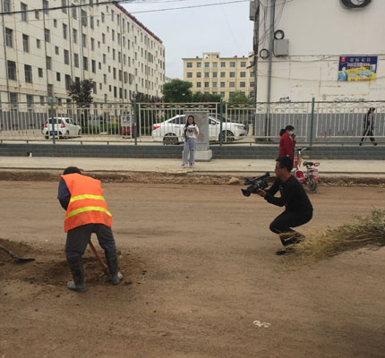 2018年5月8日,合水电视台对由米乐官方网页版承建的合水县花园路拓宽改造工程进行拍摄报道。(水泥稳定碎石层)