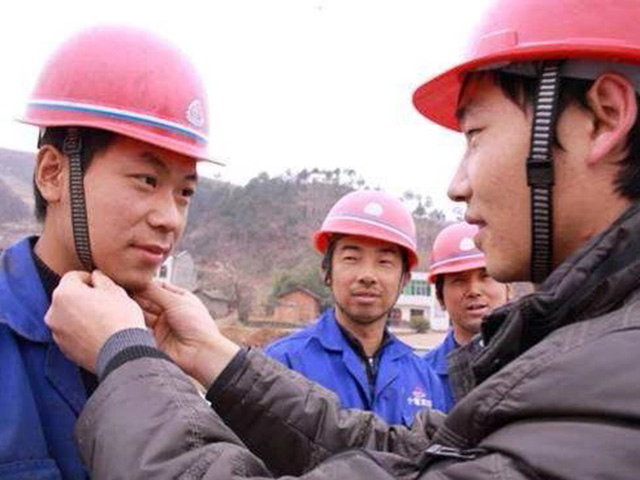 安全督查组组长李治裕为现场作业人员详细讲解安全防护用品的正确佩戴方法