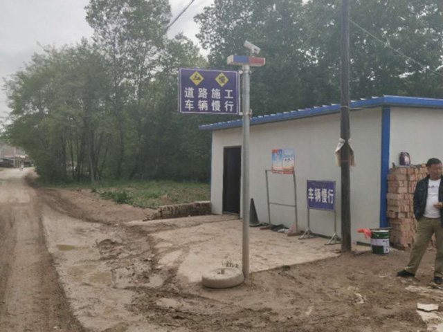 沿线醒目的安全警示标语,提醒过往行人及车辆安全通行