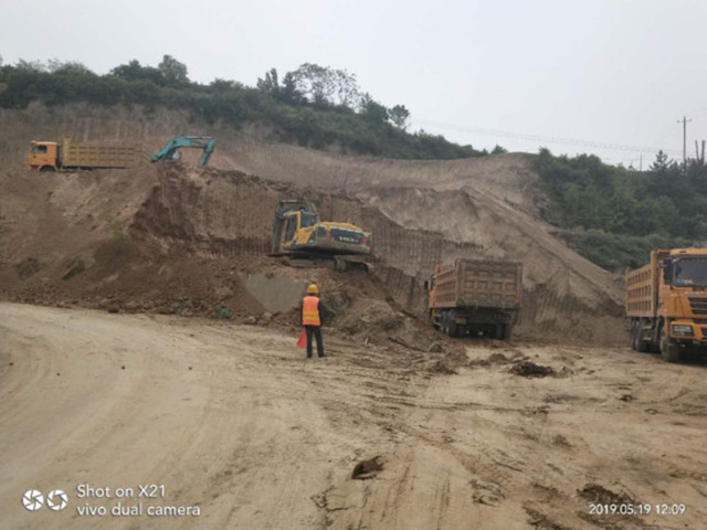 该项目正在进行路基施工,土方作业安全有序的进行,每个作业面配备至少两名安全疏导人员疏导交通