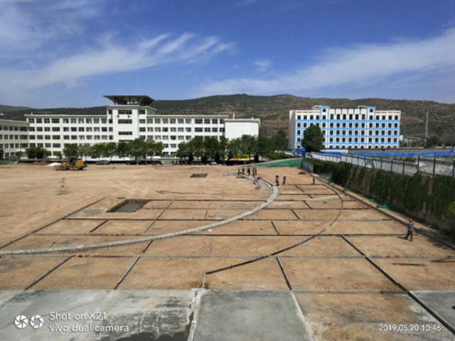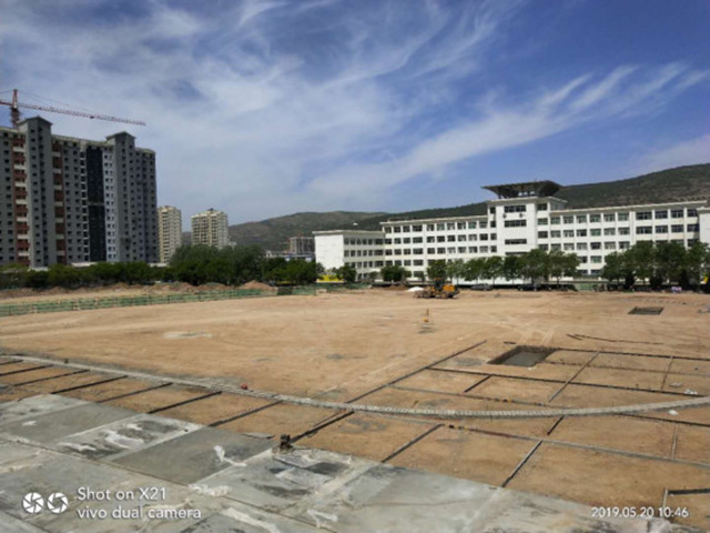 平凉市庄浪县紫荆中学操场项目新建地上硬化(塑胶化)场地总面积:18081.86 平方米,其中塑胶田径场4300 平方米,设置6 道400 米标准塑胶跑道(跑道坡向由外道向内道倾斜0.4%)在跑道南侧半圆内设置跳远场地1 处,化侧半圆内跳高场地1 处:足球场人工草坪9660 平方米:水泥地面硬化4010 平方米,配套修建混凝土排水沟480 米;电缆沟470 米,预埋 PVC40 电线管:暖气沟115 米,维修原有看台1 处(看台水平投影面积1200.00 米),拆除原有面层并处理基层,新做6 厘米厚混凝土+水泥浆结合层+5 厘米厚彩色水泥面层。总投资696.091802 万元。